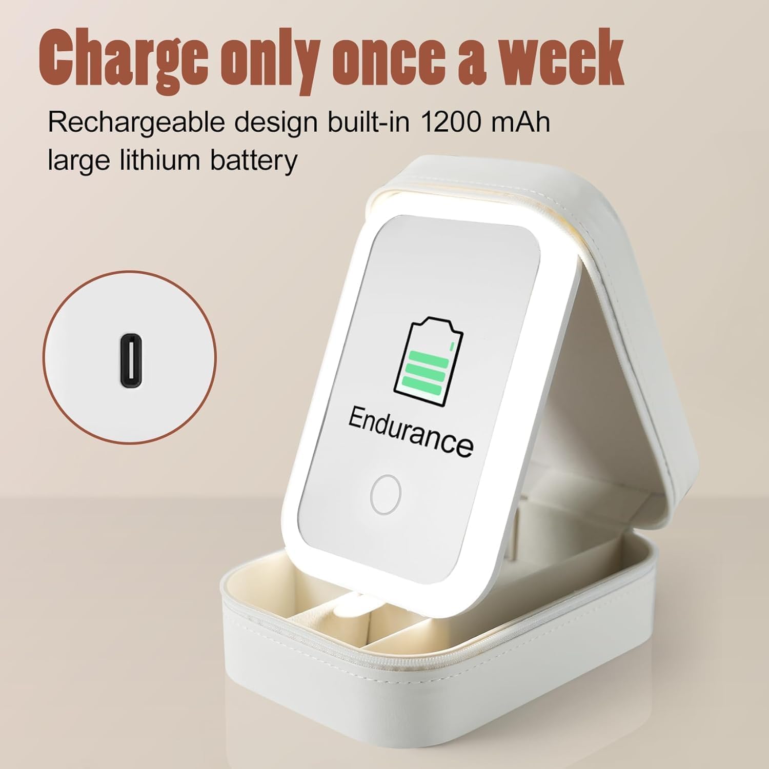 This chic and compact jewelry case features a sleek pink faux-leather exterior and a soft, protective interior. Its standout feature is a high-definition mirror framed by a bright LED light strip, allowing you to easily put on jewelry or touch up your makeup anywhere. The interior is intelligently divided to keep your accessories organized, tangle-free, and safe from scratches.
