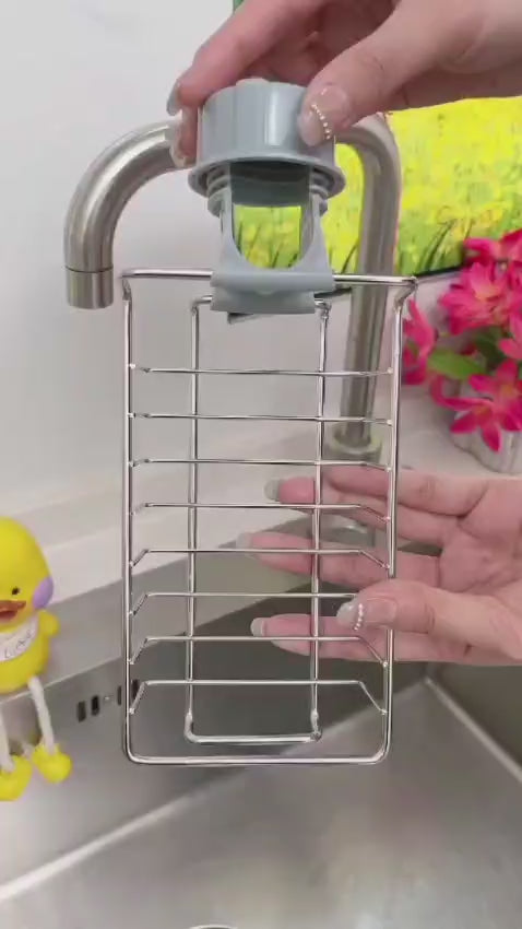 Soap, Sponge Holder, Stainless Steel Sink, Caddy Organizer, Tap Organizer Clip Storage Rack Practical Home Kitchen Faucet Shelf Snap-on Faucet Rack Versatile Sink for Kitchen and Bathroom - Neat Storage Solution, no Rail (1 Pc)